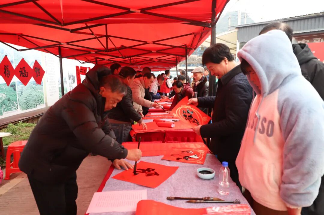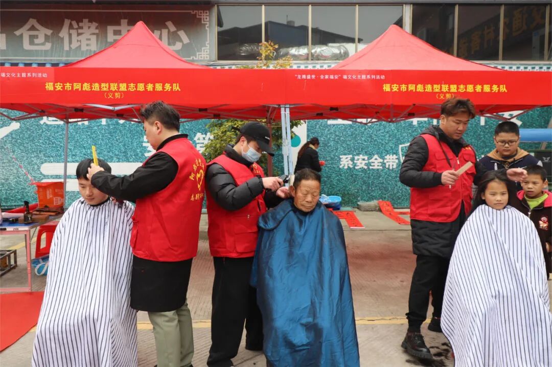 活動現(xiàn)場,便民志愿服務(wù)隊(duì)伍擺臺設(shè)點(diǎn),開展移風(fēng)易俗宣傳活動,向群眾發(fā)放傳單、倡導(dǎo)文明新風(fēng)尚。閩東醫(yī)院醫(yī)療服務(wù)隊(duì)開展義診、農(nóng)技專家服務(wù)隊(duì)進(jìn)行農(nóng)業(yè)科普、書法家書寫并贈送“福”字和春聯(lián)……互動宣傳內(nèi)容豐富、形式多樣。此外,活動還邀請了福安市阿彪造型聯(lián)盟志愿者服務(wù)隊(duì)和福安市慈善總會陽光義工聯(lián)盟為群眾提供義剪、中醫(yī)康復(fù)(含推拿、拔罐、刮痧)等便民服務(wù)。項(xiàng)目多,接地氣,深受群眾好評。