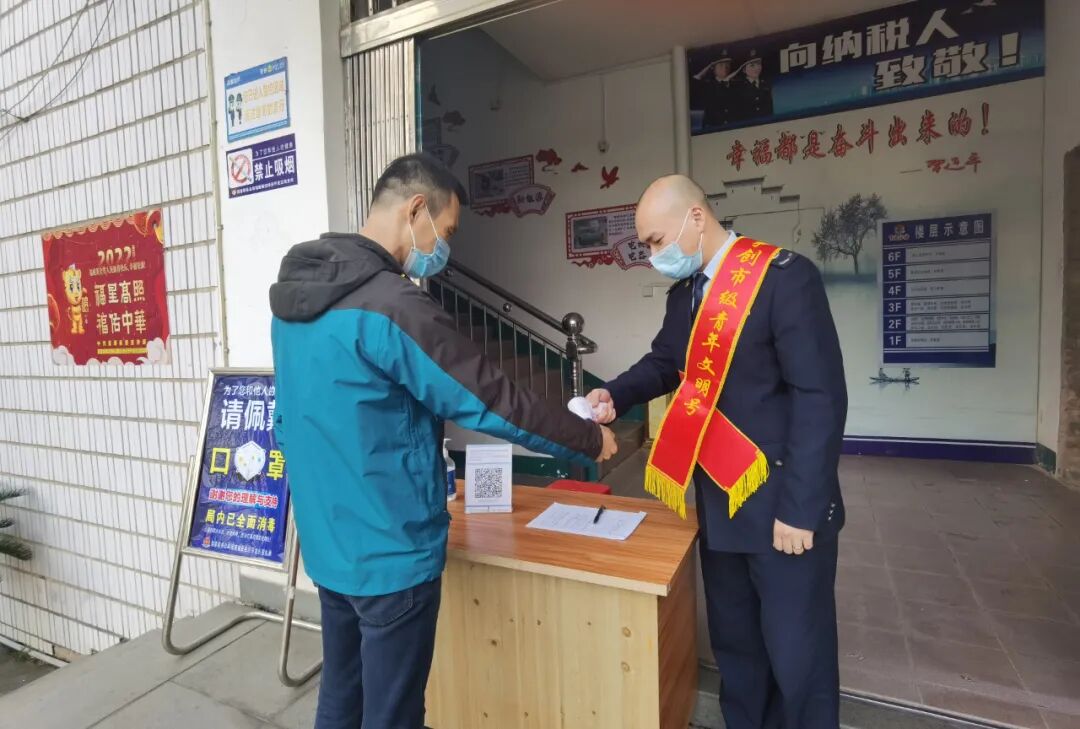 國家稅務(wù)總局福建福安經(jīng)濟(jì)開發(fā)區(qū)稅務(wù)局辦稅服務(wù)廳青年文明在辦稅服務(wù)廳入口處引導(dǎo)納稅人出示八閩健康碼,進(jìn)行掃碼登記使用免洗洗手液,并為納稅人測量體溫。同時到農(nóng)村進(jìn)行疫情防控宣傳,并為居民們清掃街道展現(xiàn)人文關(guān)懷。
